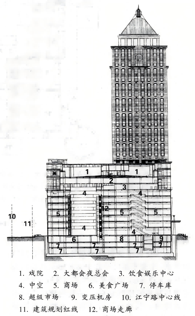 裙房10层的原电影院改造为5,000平方米文化设施。